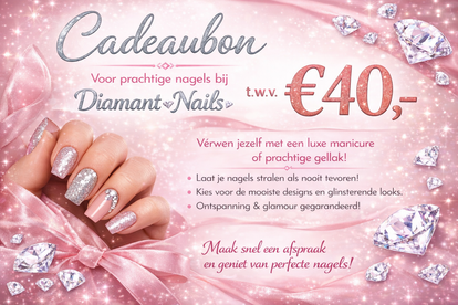 Welkom bij nagelstudio Diamant-nails! Verzorgde handen met mooie en vakkundig verzorgde nagels zijn een belangrijk onderdeel van uw persoonlijkheid. Mooie nagels zijn bijna niet meer weg te denken bij de moderne vrouw van nu. Ik ben gespecialiseerd in het verzorgen en verfraaien van nagels. Of je nu op zoek bent naar een klassieke French manicure, een trendy nail art design, of een ontspannende spa-manicure, ik heb het allemaal voor je. Ook voor problemen en bijtnagels kunt u bij mij terecht.